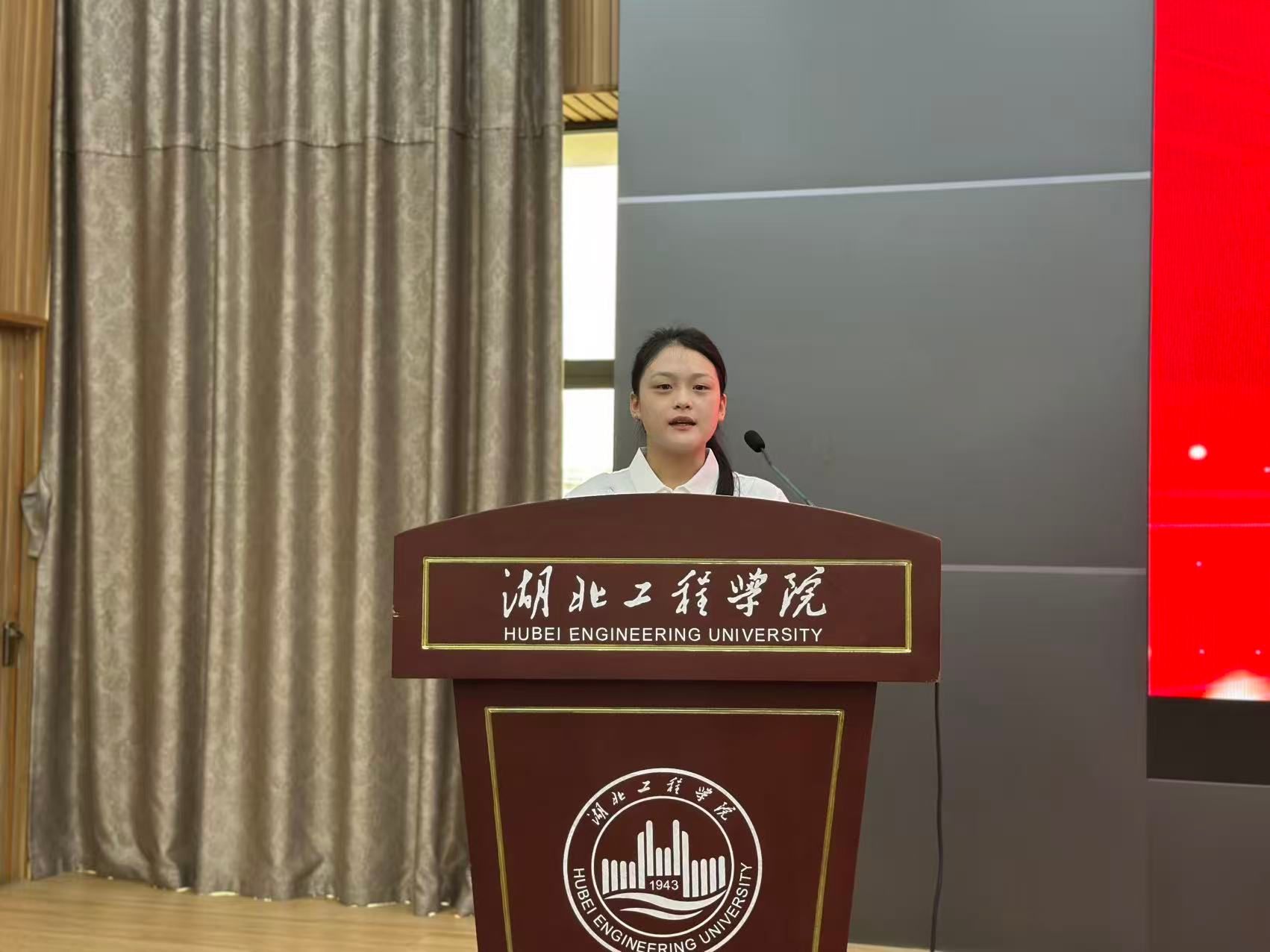 新生代表饶静怡在发言中表达了对大学生活的憧憬与奋斗决心。