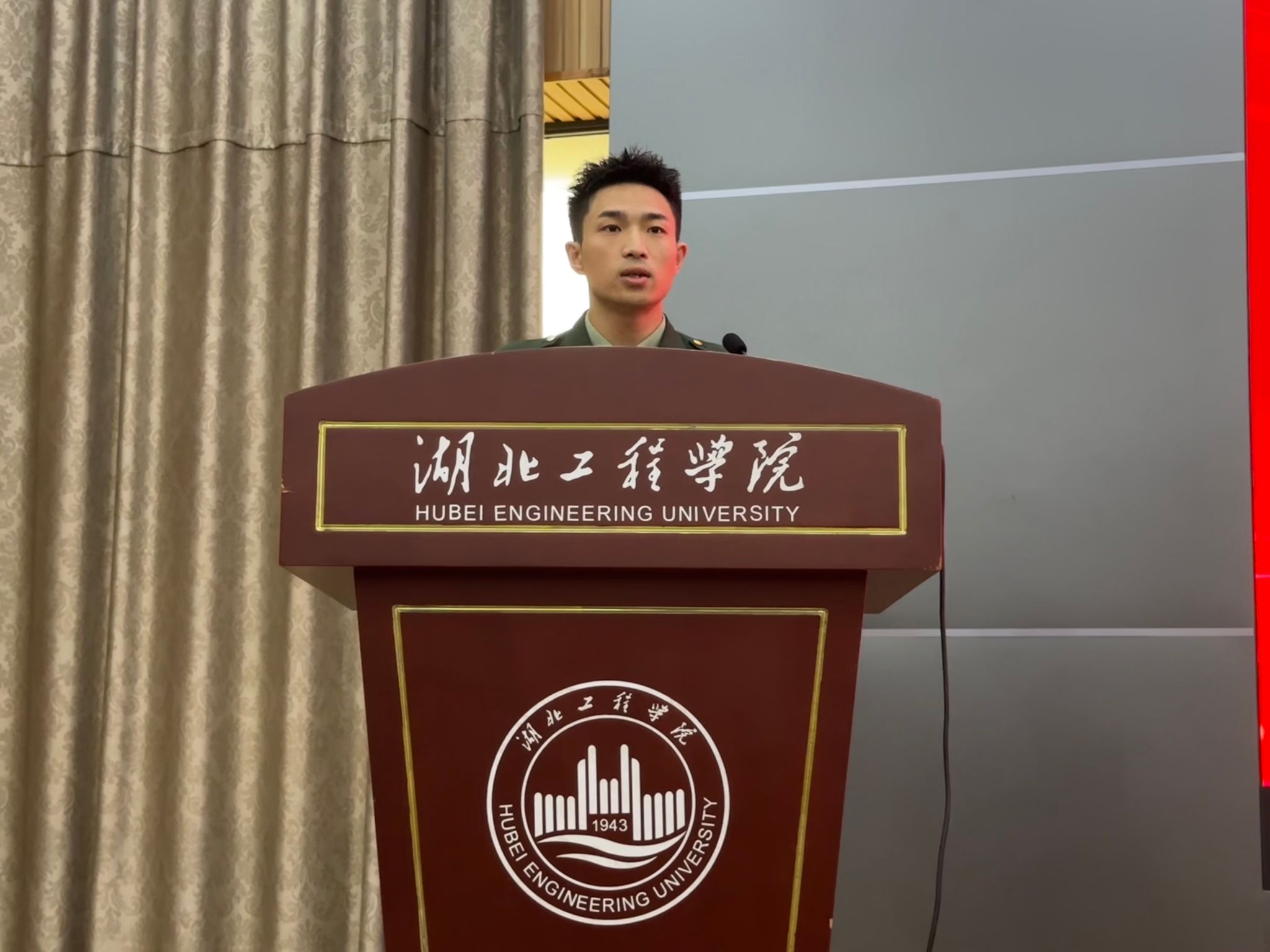 高年级学生代表鲍国旗作为退伍大学生,分享了学习训练与成长体会,结合军旅与校园经历,提醒新生夯实基础,积极参与实践与志愿服务。